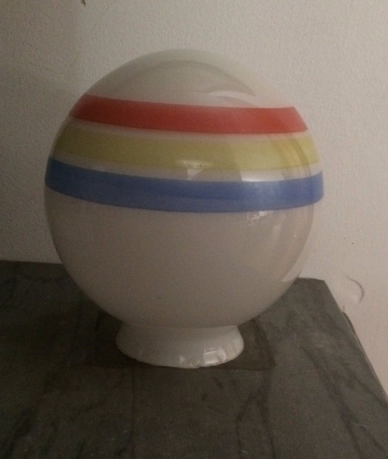 Design, Inusuale Coppa Per Lampada, Vetro Bianco Con Decori Policromi, Decorativa